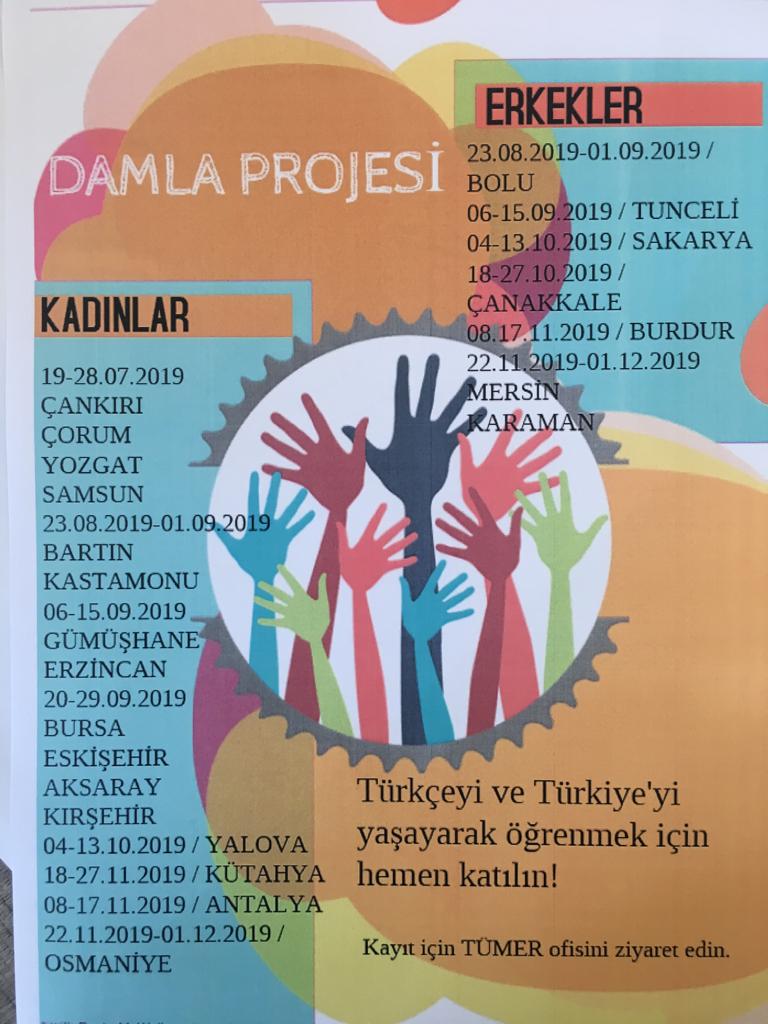 T.C. Gençlik ve Spor bakanlığı tarafından düzenlenen Damla Projesi devam ediyor. Proje, Türkeyi'yi görmek ve kültürümüzü daha yakından tanımak isteyen öğrenciler için çok güzel bir fırsat. Ayrıca öğrenciler gidecekleri yerde yeni arkadaşlıklar kurabilir ve sosyal yönlerini geliştirebilirler. Kız ve erkek ayrı gruplar şeklinde gerçekleşen proje için başvuru yapılabilecek illeri ve tarihleri aşağıdaki görselden inceleyebilirsiniz. Projeye başvurmak isteyen öğrencilerimizin ofisimize gelip gerekli bilgileri paylaşmaları yeterli.